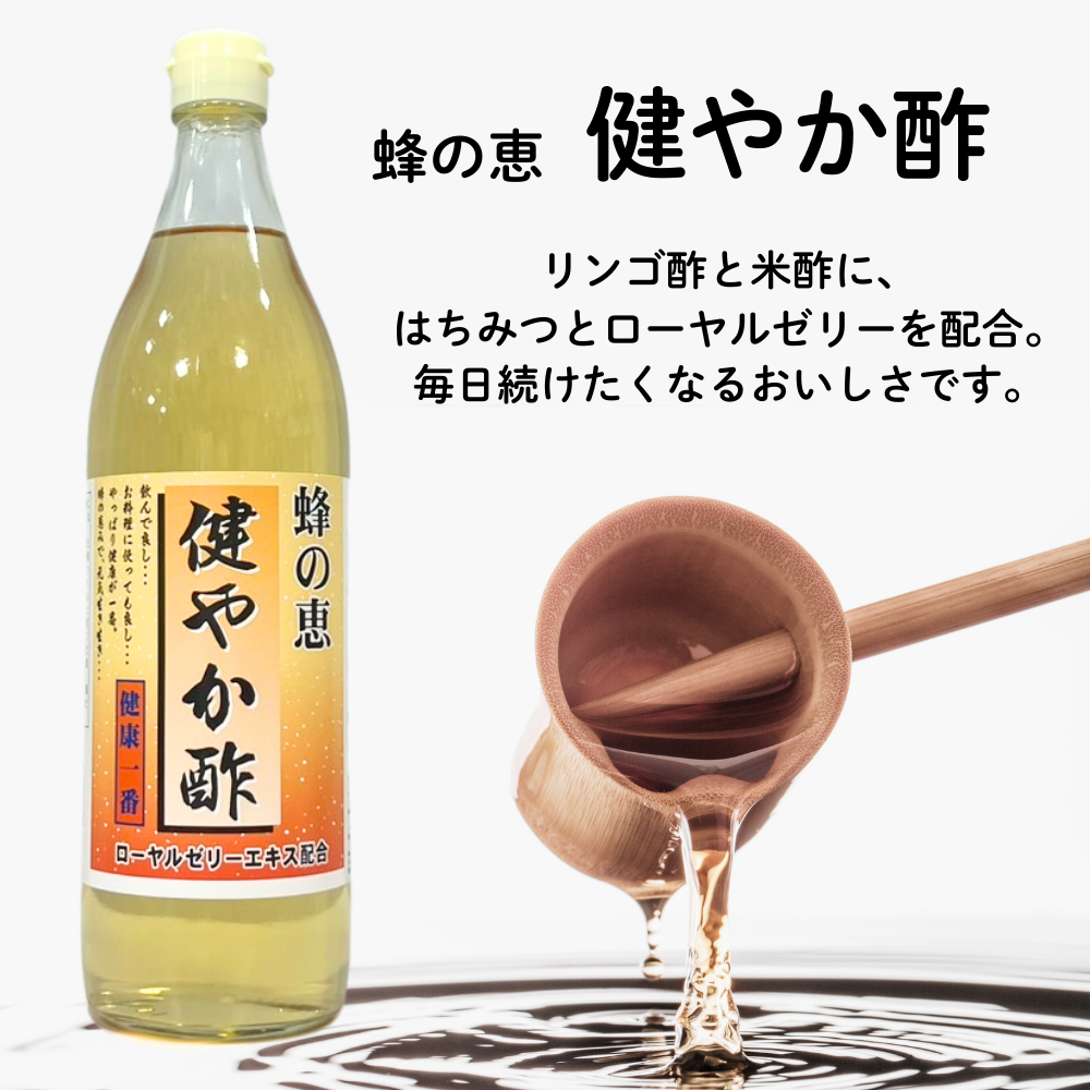 はちみつ・ローヤルゼリー・リンゴ酢・米酢など蜂の恵みを加えることでおいしく飲みやすいお酢に仕上げました。飲むお酢は、食欲の無い時や健康維持の為にお飲み頂きたい健康飲料酢です。